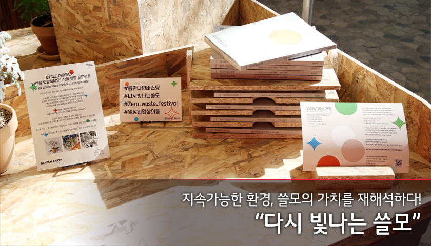 얼마 전, 개관 6개월을 맞아 틈만의 철학을 담은 매거진 <일상비일상의틈>이 발간되었는데요. 매거진의 첫 번째 주제는 바로 우리가 살아갈 ‘환경’으로 선정되었습니다. 매거진은 지속가능한 삶과 문화를 다루며 다양한 사람들의 이야기를 담아내고 있습니다. 그리고 3월, 매거진에서 담아낸 환경의 가치를 오프라인 공간에서도 소개하고자 Zero Waste Festival “다시 빛나는 쓸모”가 탄생하였죠.