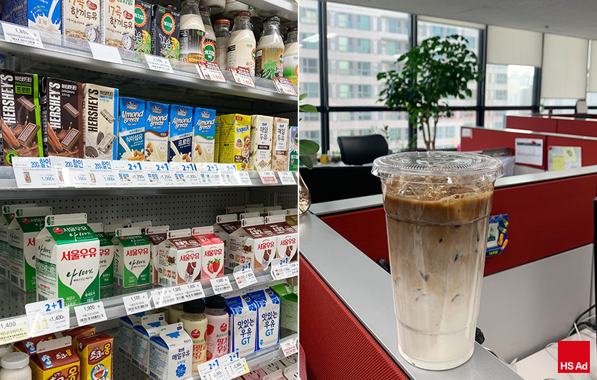최근에는 사내 익명게시판인 만사소통을 통해서 카페인을 섭취할 수 없는 임직원을 위한 음료 요청이 생겼고, 이에 따라 계절과일 우유도 함께 판매되고 있습니다. 임직원 개개인의 작은 의견까지도 최대한 수용하여 반영하는 회사라는 점이 뿌듯하네요. 몇 주 전에는 제철인 복숭아를 재료로 복숭아우유가 판매되었는데요. 정말 맛있게 먹어서 내년에도 또 볼 수 있기를 희망합니다!