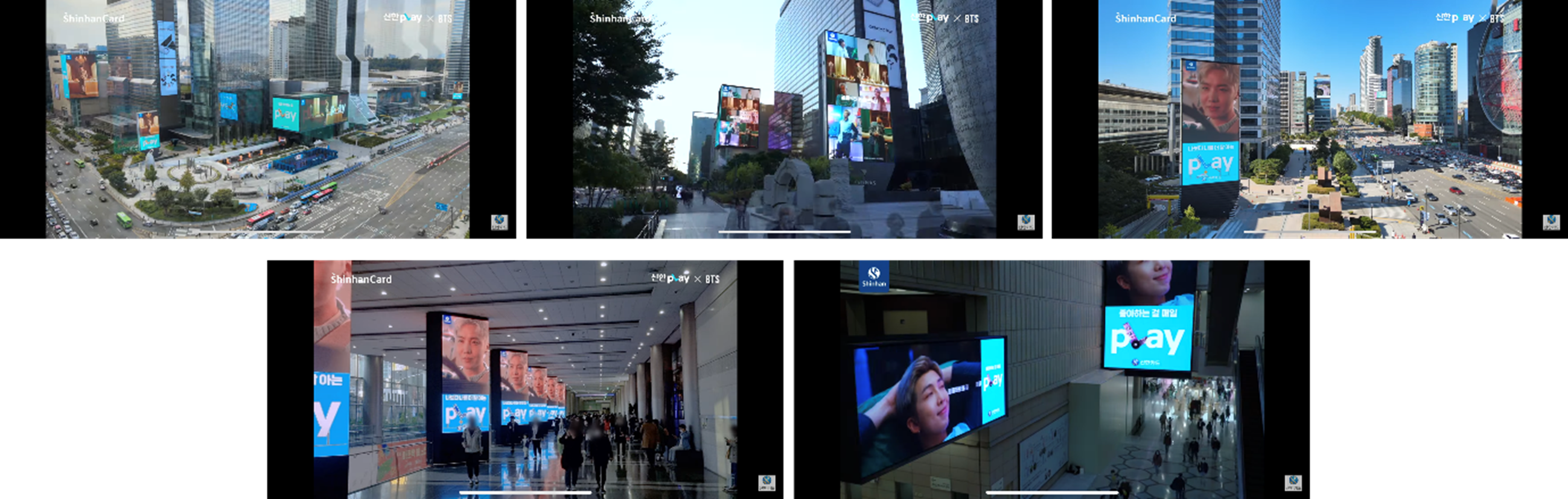 프리 런칭에서 귀에 익은 ‘Take On Me’가 런칭편과 본편에서도 BTS 멤버와 함께 노출됩니다. BTS라는 글로벌 뮤지션의 곡을 활용하는 방법도 있었지만 타 브랜드와 차별적이지 않았고, 신한pLay를 대표하고 캠페인의 연속성을 강조하는 차원에서 BGM을 유지했습니다. TV와 디지털 매체는 물론, 어디에서도 BTS가 멈춤 없는 pLay를 보여주었습니다. 코엑스 일대와 올림픽대로 주유 야립매체, 버스 광고 등 소비자의 일상 속에서 신한pLay와 BTS를 경험하게 됩니다.