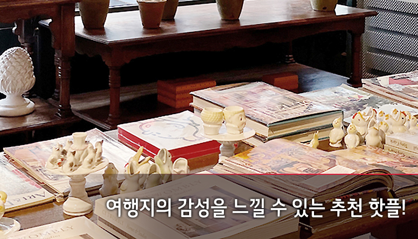 여행은 모두가 좋아하는 액티비티입니다. 여행을 생각하면 설레고 행복하고, 여행을 통해 느꼈던 만족감은 오래오래 기억 속에 남게 됩니다. 여행에 대한 갈증을 해소하고 싶다면, 그리고 기억 속의 향수를 되새기고 싶다면, 잘 꾸며진 공간에서 잠시나마 만족감을 느껴보아도 좋을 텐데요. 능력 있고 감각적인 공간 기획자들 덕분에 우리 주변에는 직접 가볼 수 없는 아쉬움을 달랠 수 있는 훌륭한 공간들이 많이 있습니다. 마스크를 벗고 예전으로 돌아가기 전까지 추억을 회상할 수 있는 공간을 찾아보는 것은 어떨까요?