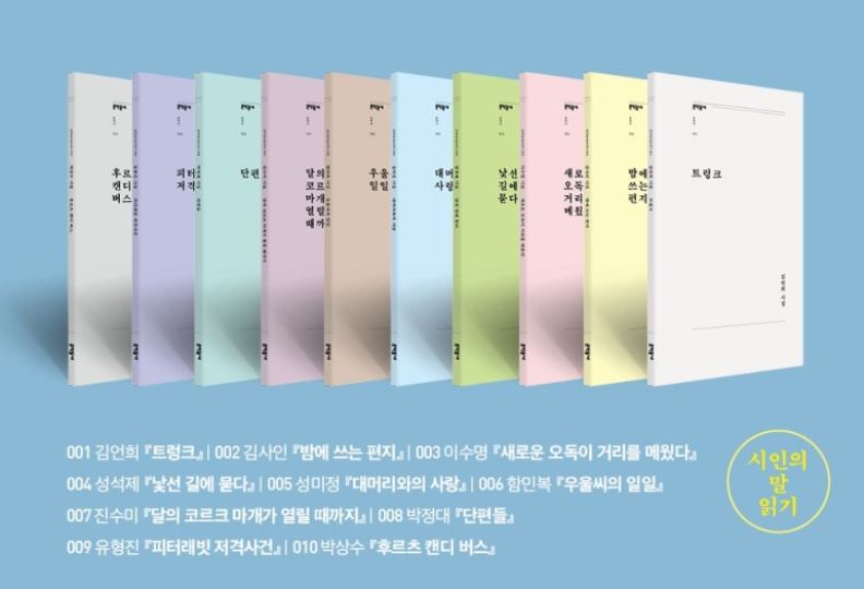소개해 드린 시집 외에도 문학동네에서는 ‘문학동네 포에지’라는 테마로 시인들의 초기 시집을 발간합니다. 사내 도서실에도 꽤나 종류가 다양하니 그날 기분에 따라 마음에 드는 색깔, 제목만 보고 대여하시는 즐거움 추천드립니다!