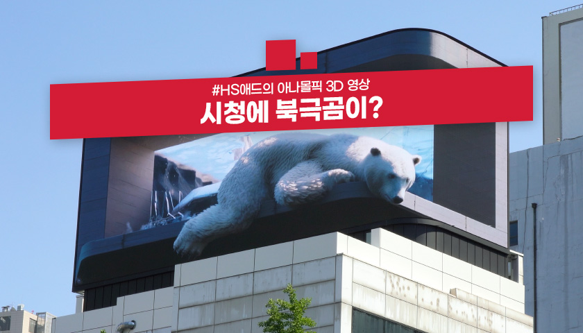 HS애드에서 3D 아나몰픽(Anamorphic: 착시를 통해 입체감을 극대화하는 기법) 기법을 활용한 미디어아트 영상을 선보였습니다.