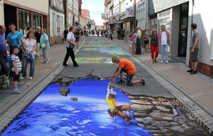 아나몰픽 3D 아트 또는 아나몰픽 일루젼(anamorphic illusions) 아트라 불리는 이 분야는 다소 생소하게 느껴질 수 있습니다. 하지만, 길바닥 아트라고 불리는 아래의 사진을 보신다면 바로 무엇인지 이해하실 것입니다.