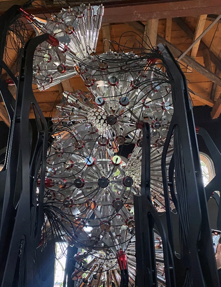 영구 전시관을 가지고 있는 한국관은 올해 여러 아트 매체에서 꼭 가봐야 할 국가관 중 하나로 선정되는 등 방문객으로부터 많은 호평을 받고 있습니다. 대표작가로 선정된 고등과학원의 연구책임자로 활동하고 전자 음악가이기도 한 다재다능한 예술가 김윤철 작가의 ‘Gyre(나선)’을 주제로 예술과 과학, 음악을 결합한 설치 작품을 선보였습니다. 혼란스러운 현재와 부풀어 오른 미래의 경계를 의미하는 ‘나선’은, 중앙에 설치된 Chroma V를 통해 안과 밖의 공간을 연결하며 소통합니다.