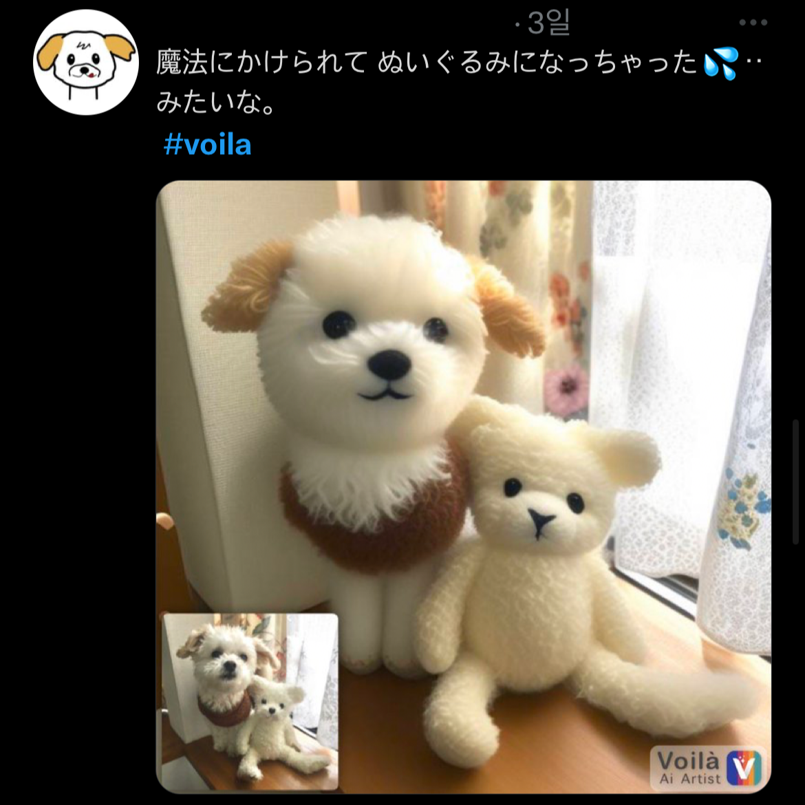 반려동물을 키우는 사람들 사이에서 '핫'한 앱이 있어요! 바로 반려동물을 인형처럼 보정해 주는 앱 'Voila'. 어플을 사용하면 인형처럼 보정되는 귀염둥이 우리 집 막내를 만나볼 수 있어요.