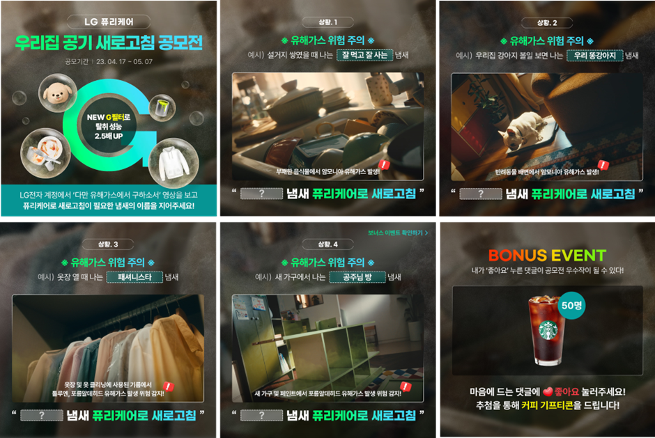 제품의 필요성이 와닿을 수 있었다는 평가와 반응들이 다수를 이뤄 캠페인을 통해 궁극적으로 만들어내고자 하였던 공기청정기의 새로운 기준과 구매 명분을 이끌어 낼 수 있었습니다. 이제 여러분도 공기청정기가 사계절 필수 가전이라는 것에 동의가 되셨나요?