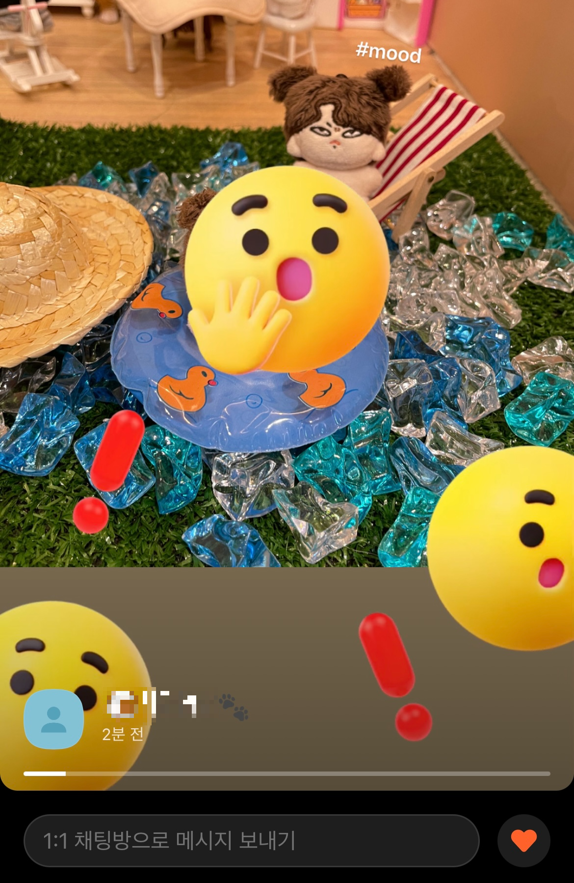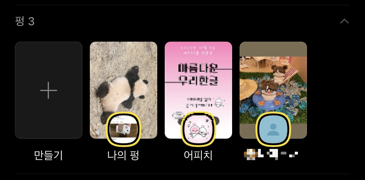 인스타그램 스토리와 다른 점은 펑을 누르지 않아도 게시물을 미리 볼 수 있다는 점! 귀여운 사진을 펑에 올려놓으면 카카오톡에 접속할 때마다 기분이 귀엽습니다😳
