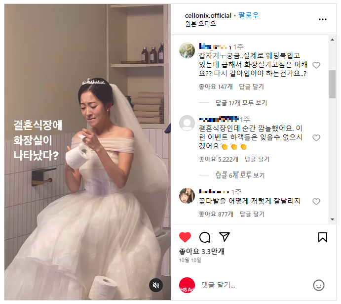 이번 캠페인은 사람들에게 웃음과 긴장감을 동시에 주며 '흥미유발'에 성공했습니다. 특히, 결혼 편 영상은 인스타그램 릴스에서 260만 뷰, 3.3만 개의 좋아요와 약 140개의 댓글을 기록하며 큰 화제가 되고 있습니다. 댓글에는 자신의 겪은 실제 상황에 관한 이야기와 사람들의 질문으로 가득 차있습니다.
