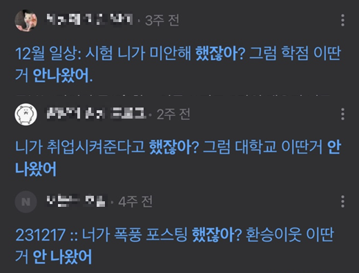"너가 '자기야 미안해' 했잖아? 환승연애 이딴 거 안 나왔어"