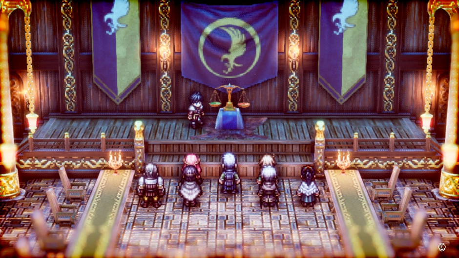 인생의 복잡한 가치관을 도덕/실리/자유로 3등분하고 플레이어의 선택에 따라 명확히 다른 전개로 나아가게 합니다. / 출처: 2번째 닌텐도 스위치, <트라이앵글 스트래티지>