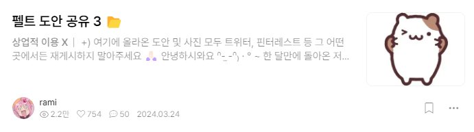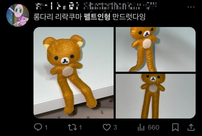단지 만들어서 완성품을 보여주는 것에서 끝나는 것이 아닌, 펠트 포카홀더나 인형의 제작자들이 도안을 공유하며 많은 사람들이 유행에 탑승하고 있어요.
