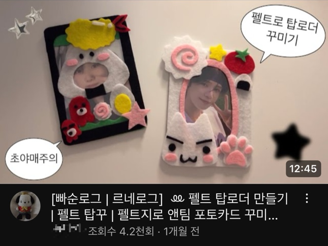 먼저, 포토카드를 보관할 수 있는 펠트지 포카홀더가 유행이에요! 각자 좋아하는 연예인, 운동선수, 인플루언서 등의 특징이나, 그들의 닮은 캐릭터 등을 본떠 나만의 포카홀더를 만들 수 있어 화제예요.