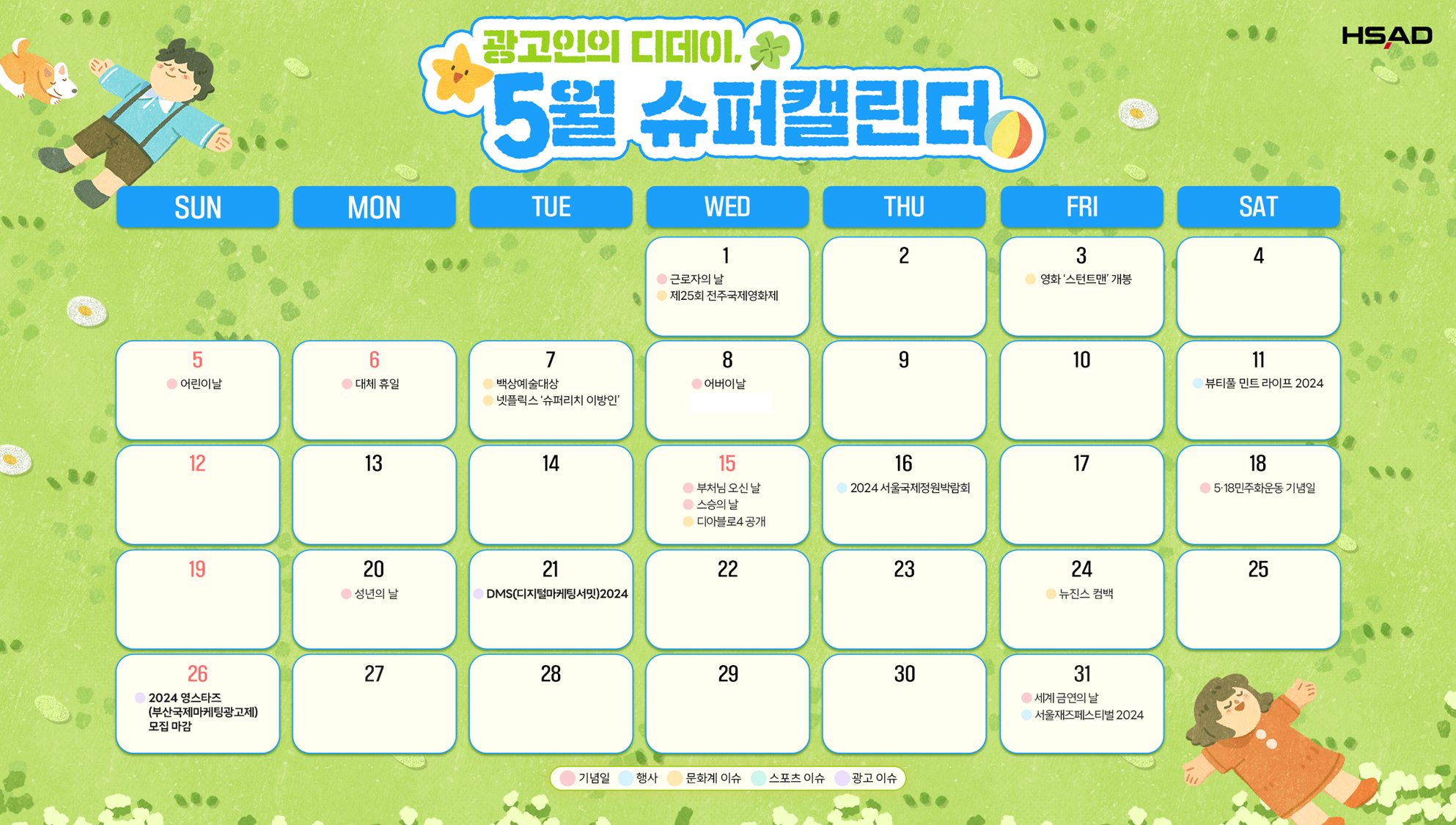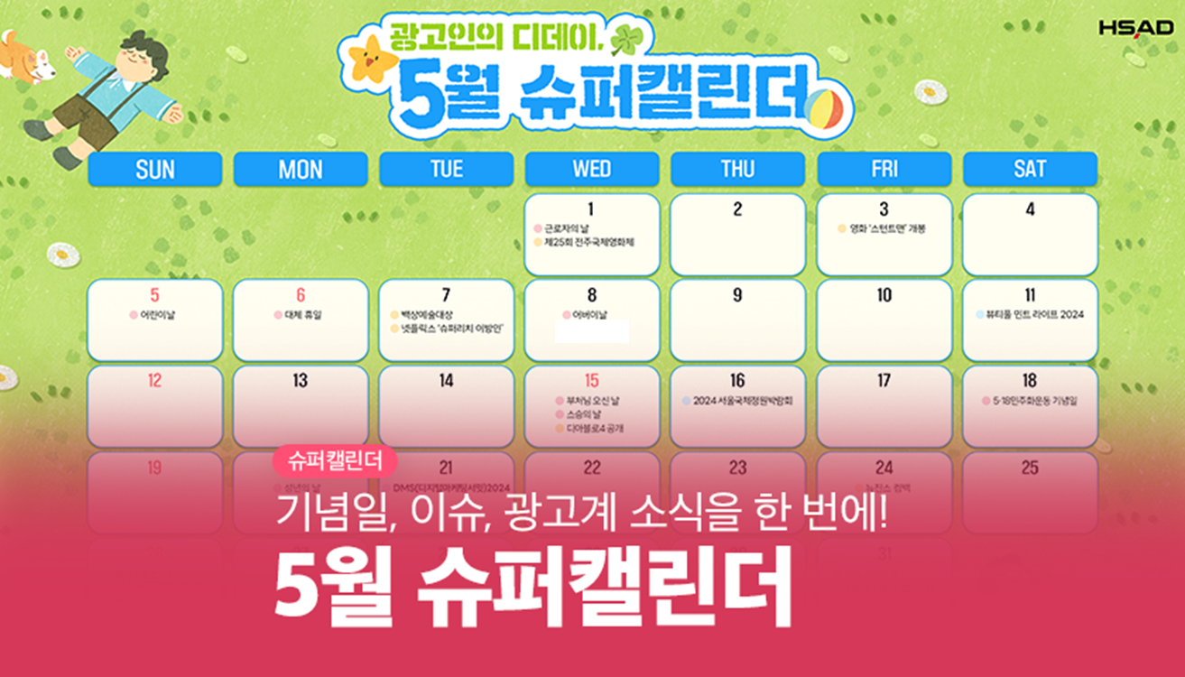 | [HS슈퍼캘린더] 광고인이라면 알아두어야 할 03월의 디데이🌱 (1) | 2024.02.06 |
