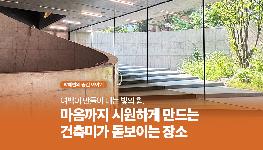 높은 층고, 차가운 소재, 투명함으로 연결된 내외부와 강렬한 햇빛이 만들어내는 그림자의 조합은 그 자체로도 잊지 못할 인상과 경험을 만들어 냅니다. 이런 시퀀스들을 소재로 한 스토리텔링으로 건축가와 디자이너들이 심혈을 기울여 만든 공간에 들어서면 어떤 목적으로 그곳을 찾았든 공간 그 자체로 깊은 감명을 받게 됩니다. 여러분도 이번 여름 아름다운 건축물이 여름의 빛과 만나 색다른 경험으로 각인시켜 줄 나만의 아지트와 같은 공간들을 찾아보길 추천합니다.😊