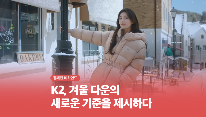 우리는 K2를 대표하는 얼굴, 광고 모델 수지를 주연으로 내세워 마치 광고가 아닌 새로운 유튜브 콘텐츠를 보고 있다는 생각이 들게 만들었습니다. 숫자들에 대한 진실을 알고 싶은 호기심을 불러일으켜 소비자들이 54초가 되는 광고를 끝까지 보게 만들고, 패딩을 고를 때 다운의 순도가 중요하다는 것을 각인시켰습니다. 그럼 우리 모두 한 번 광고를 보고 올까요?