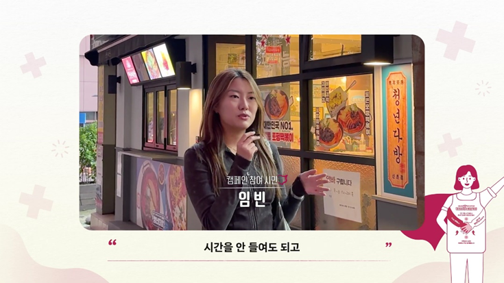 캠페인 참여 시민분들의 인터뷰 중, “평소에 교육받을 기회가 없었는데, 음식점 방문을 통해 따로 시간, 돈을 들이지 않고도 정확한 하임리히법을 배울 수 있어 좋았다”라는 반응이 인상 깊었습니다. 응급처치법 교육에 대한 접근성을 높이고자 했던 캠페인의 취지도 시민분들께 잘 전달된 것 같았고, 캠페인이 실제로 시민분들께 많은 도움이 된 것 같아 정말 큰 뿌듯함을 느꼈습니다.