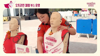 더불어 지역 축제 및 한강 축제에서 여러 소방서와 협업해 하임리히법 교육 부스도 운영하였는데요. 시민분들이 교육용 마네킹을 통해 하임리히법을 체험해 볼 수 있는 기회로, 소방관님들을 직접 섭외하여 정확한 응급처치법을 알려드릴 수 있었기에 뿌듯함을 많이 느꼈습니다😊