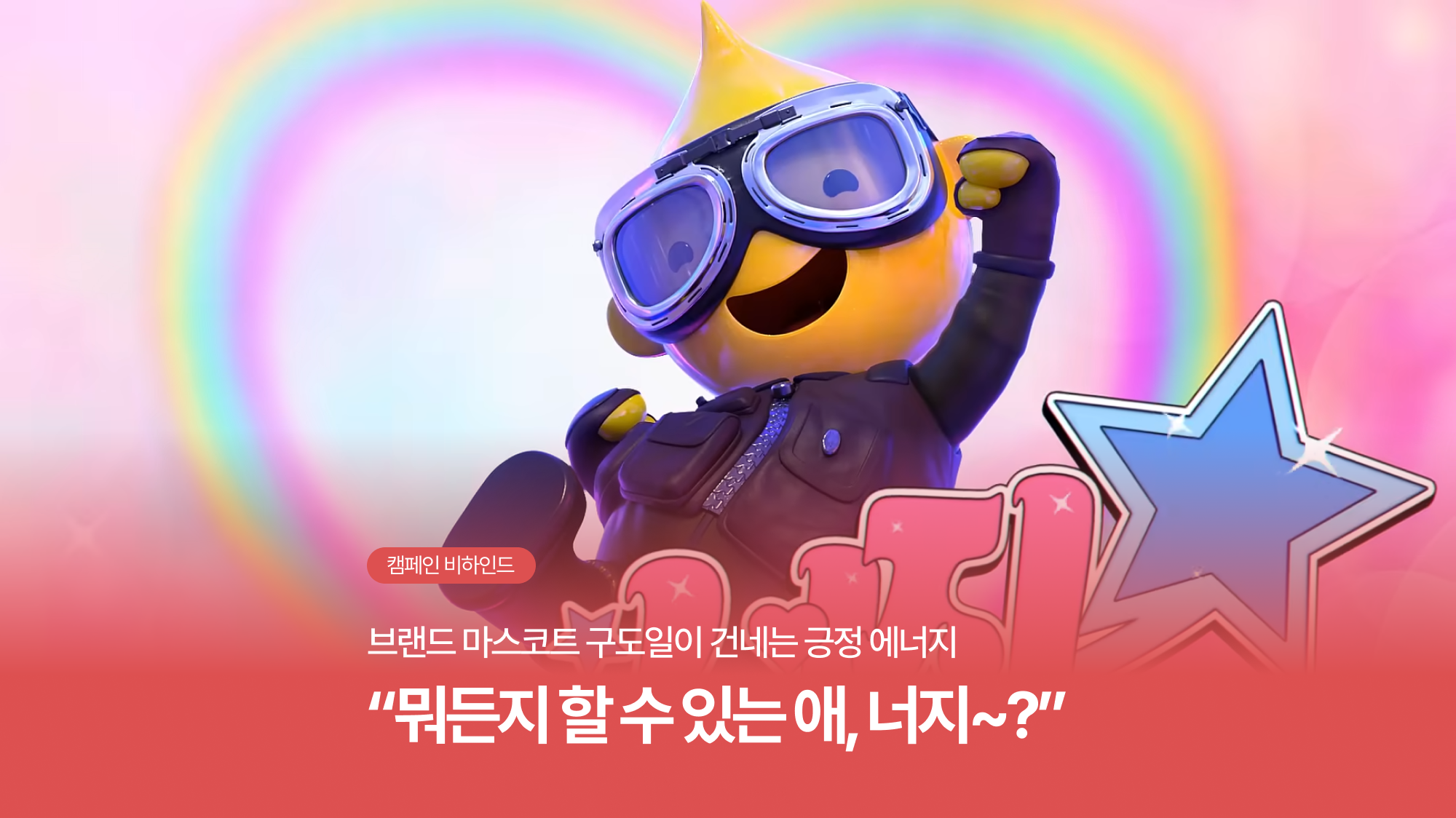 구도일은 그간 S-OIL의 브랜드 마스코트로서 오랜 시간 소비자와 소통해 왔습니다. 그리고 마침내, 이번 캠페인을 통해 긍정 에너지의 아이콘으로 진화하고자 했습니다. 긍정 에너지의 구도일이 전하는 S-OIL의 미래 비전은, 지금 시대의 소비자들이 기대하는 더 나은 내일과 맞닿아 어느 때보다 공감받을 수 있을 것이기 때문이죠.