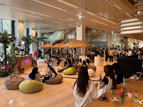 Connectwin Blossom은 대형 페이퍼 플라워를 핵심 아이템으로 커넥트윈 전체에 ‘꽃 피는 봄의 활력’을 전달했습니다. 움츠렸던 겨울을 지나 야외 활동에 대한 염원이 큰 시기임을 고려하여 주차장 한 켠에 햇살과 함께 피크닉을 즐길 수 있는 공간 Blooming Garden을 마련했습니다.