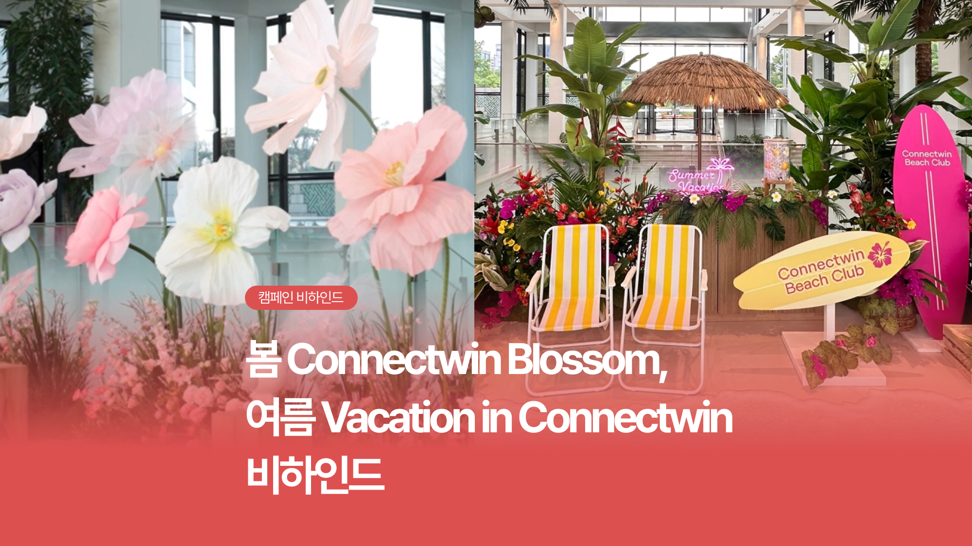 구성원들이 매일 비슷한 일상을 보내다가도, 커넥트윈에서만큼은 계절의 변화를 피부로 느끼고, 일말의 긍정적인 감정 변화를 경험할 수 있도록 계절 단위로 캠페인을 진행하고 있습니다. 환절기에 필요한 힘을 주는 것은 물론, ‘계절이 바뀌면 커넥트윈도 바뀐다’는 기대감과 소소한 즐거움을 선사하는 것에도 그 취지가 있습니다. 공간적으로는 매 시즌 핵심 연출을 1층 중원 로비에서 진행함으로써 구성원들 머릿속에 ‘커넥트윈의 계절을 만나볼 수 있는 리추얼 스팟’으로 자리하고 있습니다.