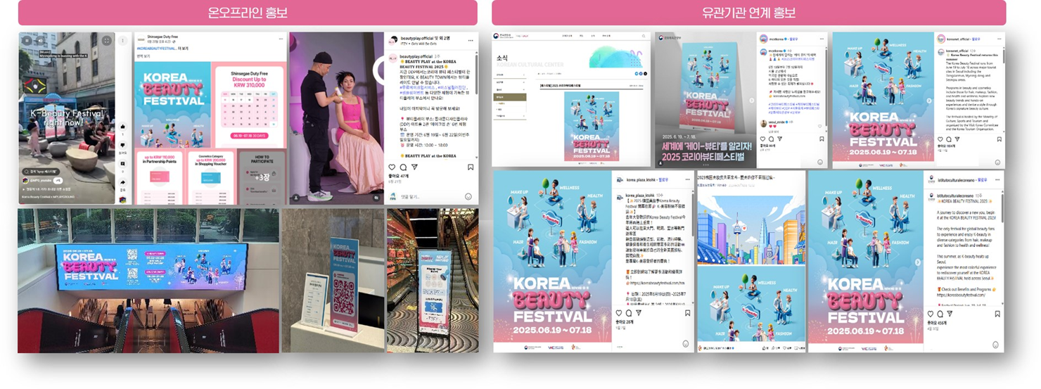 다양한 행사 공간을 순차적으로 경험하며 확장할 수 있는 ‘K-뷰티 타운’이라는 테마 아래 다양한 장소를 묶고 연결하고 확장하는 방식으로 체험할 수 있게 하였으며, 이미 한국에 방문해 있는 관광객과 6~7월에 방한 예정인 외국인들이 많이 가는 커뮤니티와 온라인 사이트 대상으로 사전 광고 집행 및 SNS 이벤트를 진행하였고, 방한객들이 국내 도착부터 출국 때까지 자주 가는 주요 장소를 따라서 사전 홍보 활동과 체험 이벤트를 진행하여 페스티벌을 입체적으로 알렸습니다.