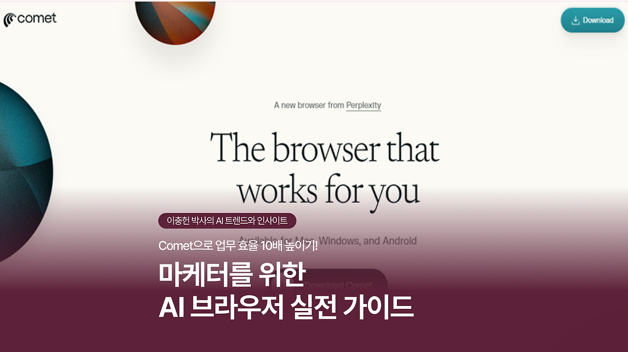 오늘은 2026년을 시작하는 기념으로 AI 브라우저인 Comet을 활용하는 법을 공유하려고 합니다. Comet은 AI 서비스 중 하나인 Perplexity에서 발표한 Agentic AI 기반 브라우저입니다. 기존 AI와 다른 점은 채팅을 주고받는 것을 넘어서, 클릭을 하지 않아도 브라우저를 활용할 수 있는 기능이 가능하게 되었다는 것입니다. ChatGPT의 Atlas나 Microsoft의 Edge Copilot 등도 있지만 그중 가장 완성도가 높고, Windows나 MacOS 등 운영체제와 상관없이 누구나 바로 활용할 수 있는 Comet을 소개합니다!